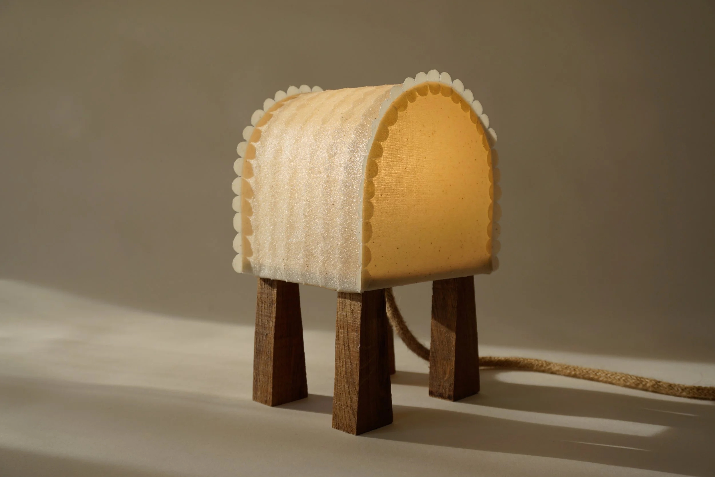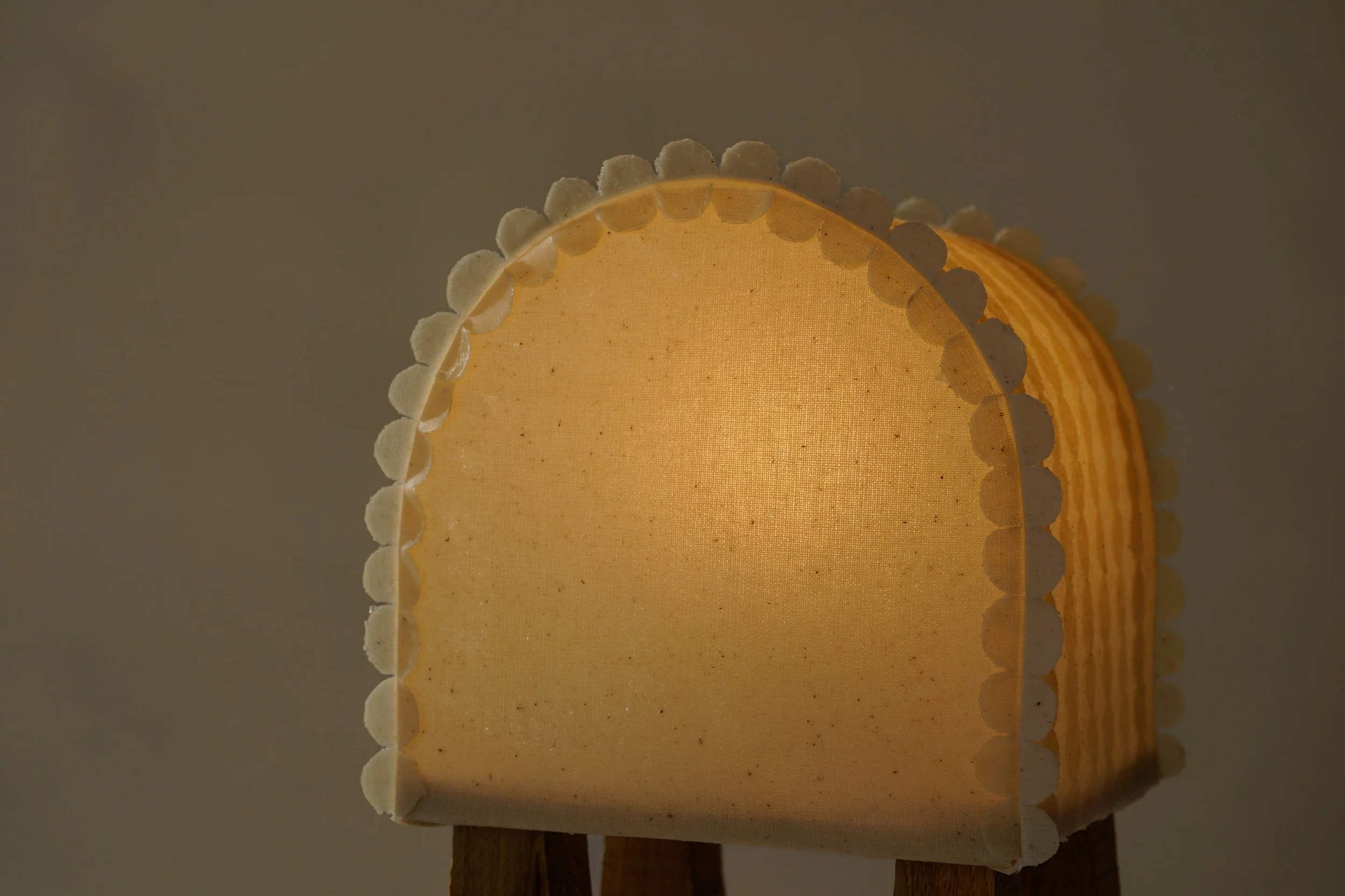 To create Vernacular Light Collection, I used local wood and raw cotton fabric. To show traditional materials in a new way, I developed a technique of shaping natural, cotton fabric using bio-resin, giving the cotton cut-outs a 3D form.
